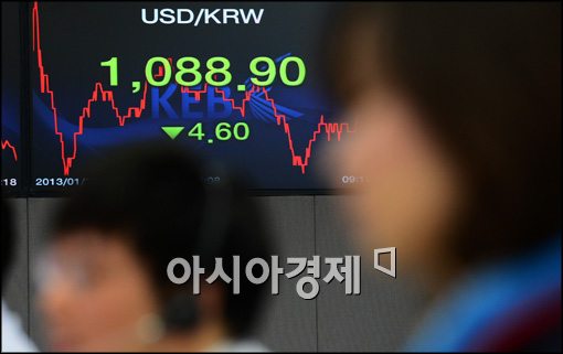 [아시아경제 최우창 기자]달러-원 환율은 내림세를 보이고 코스피 지수는 상승한 29일 서울 을지로 외환은행 본점 딜링룸에서 딜러들이 모니터 환율 움직임을 살.