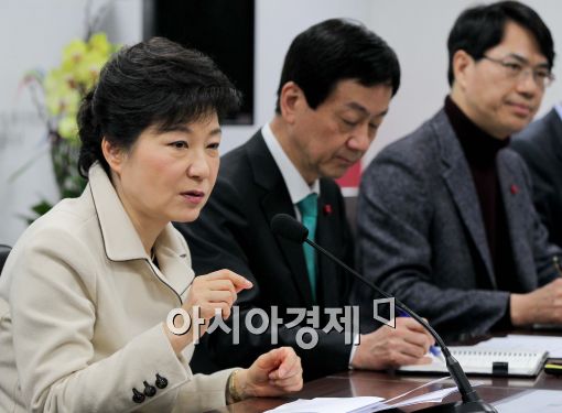 [아시아경제 윤동주 기자] 박근혜 대통령 당선인이 30일 서울 종로구 삼청동 대통령직 인수위원회에서 열린 정무분과 업무보고에 참석해 모두발언하고 있다.