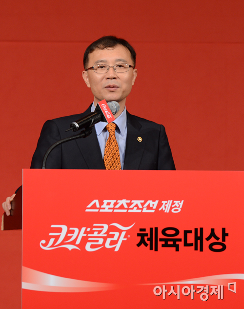 [아시아경제 정재훈 기자] 31일 오전 서울 하얏트호텔에서 열린 '제18회 코카-콜라 체육대상 시상식'에서 김용환 문화체육관광부 차관이 축사를 하고 있다.