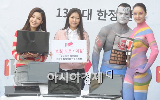 [아시아경제 백소아 기자] 18일 서울 청계천 광장에서 오픈마켓 11번가가가 반값노트북 '쇼킹노트: 더 원'을 선보이고 있다. 11번가는 이날 11시부터 1300대의 노트북을 한정 판매한다.