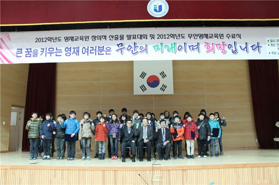 무안교육청은 최근 무안영재교육원에서 지도 강사, 학부모 등 150여명이 참석한 가운데 ‘2012 무안영재교육원 창의적 산출물 발표대회 및 영재교육원 수료식’을 성황리에 마쳤다.