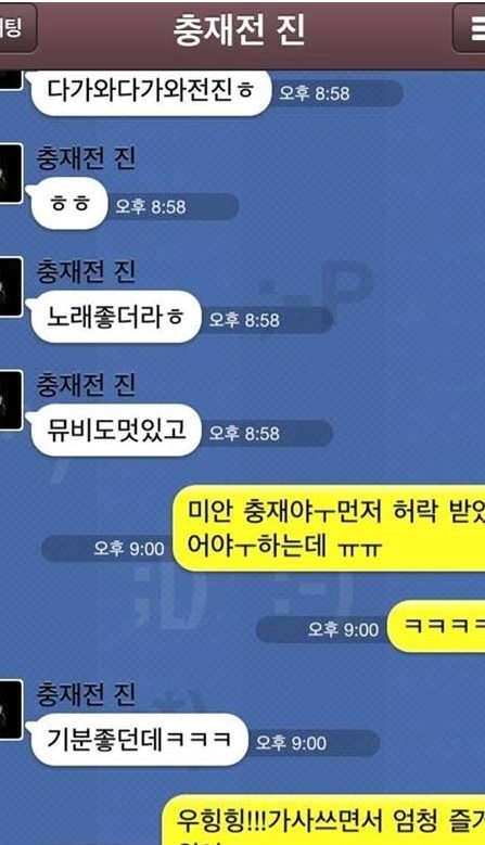 다이나믹 듀오 멤버인 개코는 20일 자신의 트위터에 전진과의 대화가 담긴 휴대전화 메시지 내용이 담겨 있다.