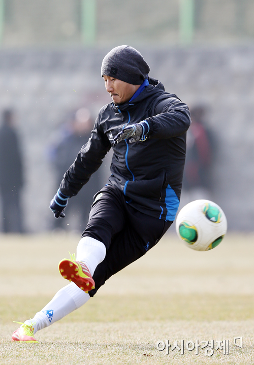 [인천=아시아경제 정재훈 기자] 인천 유나이티드 입단식을 마친 '풍운아' 이천수가 27일 오후 인천시 동춘동 인천환경공단 승기사업소 내 연습구장에서 훈련을 소.