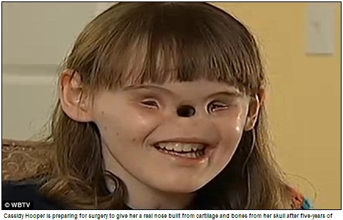 영국 데일리메일은 6일(현지시간) 미국 노스캐롤라이나주에 사는 캐시디 후퍼(16)가 5년간의 준비 과정 끝에 앞으로 2주간 코 이식을 위한 최종 수술을 받는다고 보도했다.