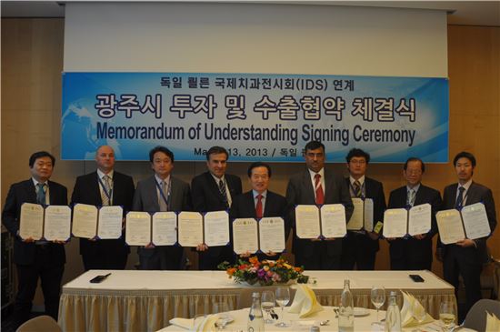 강운태 광주시장을 단장으로 한 광주시 투자유치단이 13일(현지시간) 독일 쾰른에서 치과산업 분야의 대규모 투자 유치 및 수출협약을 이뤄 향후 지역 치과산업 활성화가 기대된다.