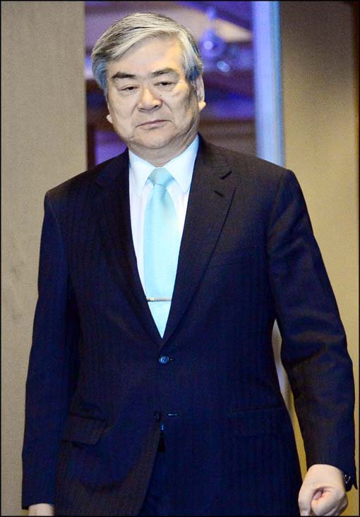 [아시아경제 최우창 기자]조양호 대한항공 회장이 14일 오후 서울 소공동 롯데호텔에서 열린 전국경제인연합회 회장단 회의에 참석, 회의장으로 들어서고 있다.