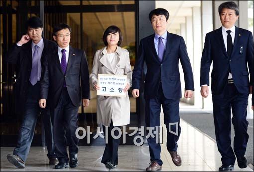 [아시아경제 최우창 기자]통합진보당 김재연 의원과 이석기 의원이 18일 새누리당과 민주통합당 원내대표를 고소하기 위해 서울중앙지검에 들어서고 있다.