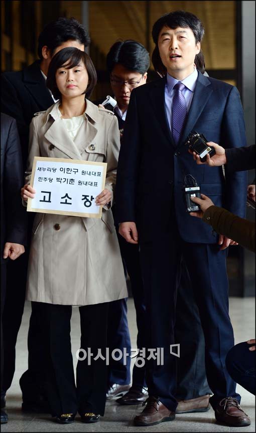 [아시아경제 최우창 기자]통합진보당 김재연 의원과 이석기 의원이 18일 새누리당과 민주통합당 원내대표를 고소하기 위해 서울중앙지검에 들어서고 있다.