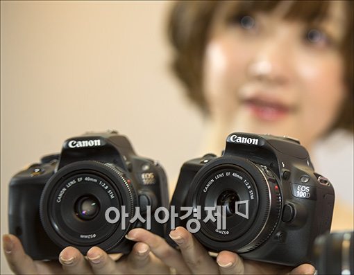 [아시아경제 윤동주 기자] 캐논코리아컨슈머이징은 21일 서울 중구 코리아나호텔에서 APS-C 타입 이미지 센서 기반의 DSLR 카메라 EOS 100D와 EOS 700D 출시 쇼케이스를 갖고 있다. 이번에 새롭게 발표되는 EOS 100D는 세계 최소, 최경량 DSLR카메라로 초보자들과 여성들에게 안성 맞춤형 카메라이다.