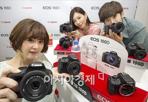 [아시아경제 윤동주 기자] 캐논코리아컨슈머이징은 21일 서울 중구 코리아나호텔에서 APS-C 타입 이미지 센서 기반의 DSLR 카메라 EOS 100D와 EOS 700D 출시 쇼케이스를 갖고 있다. 이번에 새롭게 발표되는 EOS 100D는 세계 최소, 최경량 DSLR카메라로 초보자들과 여성들에게 안성 맞춤형 카메라이다.