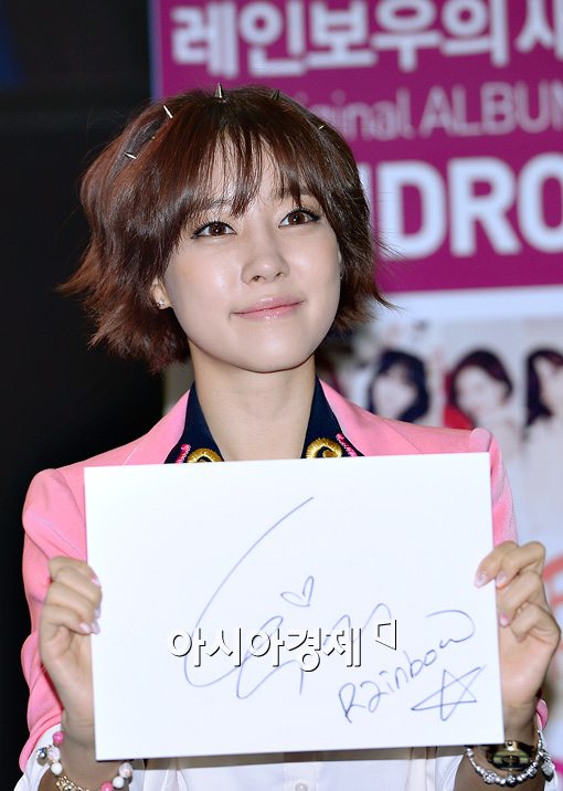 [아시아경제 송재원 기자] 걸 그룹 레인보우 고우리가 23일 오후 서울 서초구 반포동에 위치한 센트럴시티 반니앤루니스 매장에서 열린 레인보우 정규 1집 ‘Rainbow Syndrome’ 발매 기념 팬사인회에 참석해 사인을 들고 포즈를 취하고 있다.