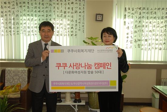 [아시아경제 이지은 기자]쿠쿠사회복지재단(이사장 구자신)은 27일 부산시여성회관에서 전달식을 갖고 부산 지역의 저소득 다문화가정 50곳에 쿠쿠 IH압력밥솥을 전달했다.