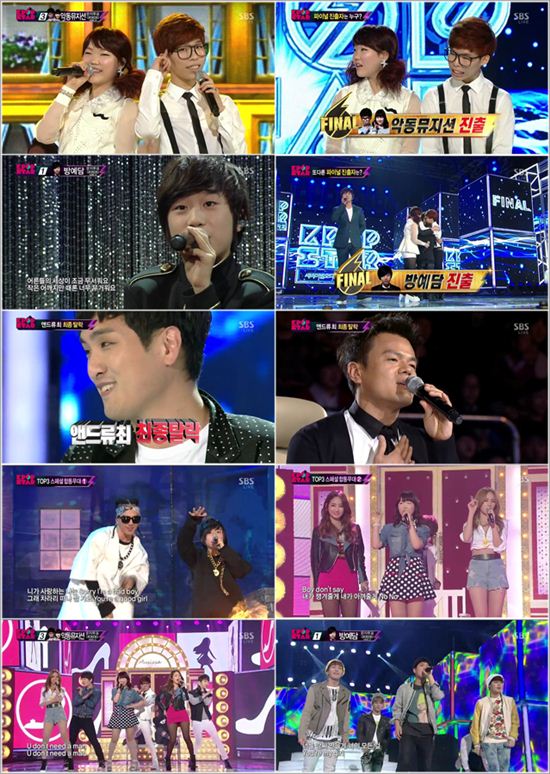 그런가하면 이날 방송에서는 예비 ‘K팝 스타’인 TOP3와 현재 최고의 ‘K팝 스타’인 3사 소속 가수들이 환상의 호흡을 맞추며 화려한 합동무대를 펼쳐 뜨거운 반응을 얻었다. 방예담은 태양과 함께 빅뱅의 ‘배드보이’로 완벽한 호흡을, 악동뮤지션은 원더걸스 예은, 미스에이의 지아, 2AM의 조권, 창민 등 JYP네이션과 멋진 콜라보레이션을 이뤘다. 앤드류 최는 샤이니와 작곡자와 가수로 한 무대에 올라 자신이 작곡한 샤이니의 노래 ‘아름다워’를 열창, 진한 감동을 선사했다.