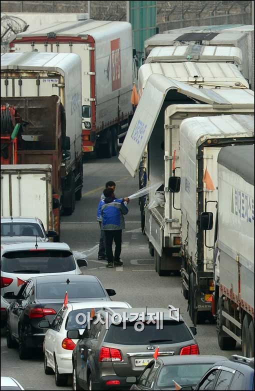 [파주=아시아경제 최우창 기자]북한이 개성공단 폐쇄 가능성을 언급한 가운데 1일 경기도 파주시 경의선 남북출입사무소에서 관계자들이 출경 준비를 하고 있다.