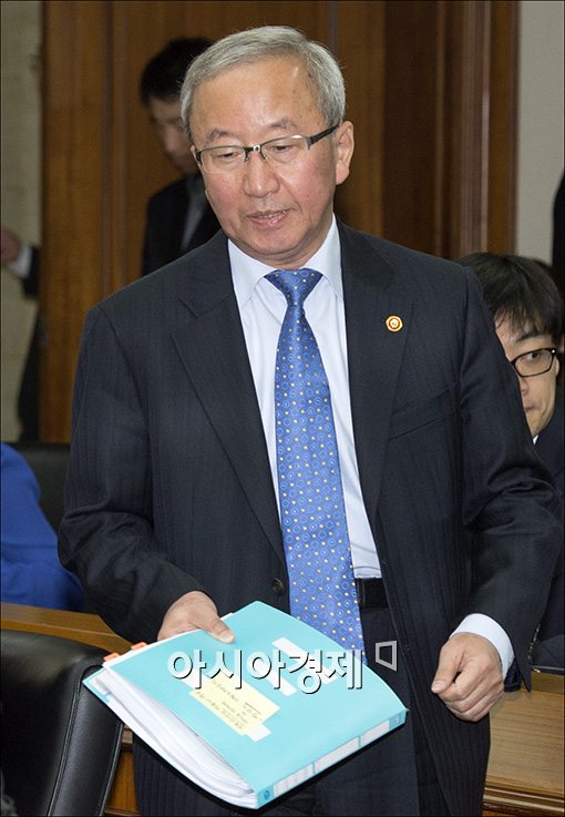 [아시아경제 윤동주 기자] 현오석 경제부총리 겸 기획재정부 장관이 1일 서울 여의도 수출입은행에서 열린 경제장관간담회에 두터운 회의 자료를 손에 들고 참석 .
