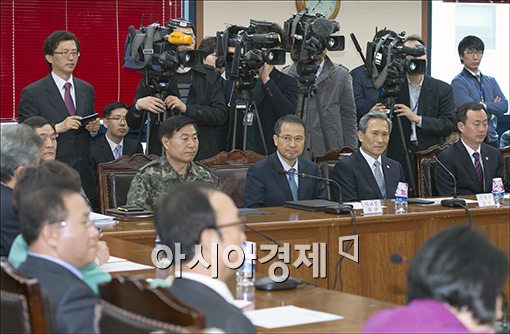 [아시아경제 윤동주 기자] 3일 서울 여의도 새누리당 당사에서 열린 북핵안보전략특위 회의에 김관진 국방부 장관, 김남식 통일부 차관등 정부측 주요 인사들이 .