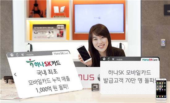 모바일카드 발급고객도 현재 70만 명을 돌파, 월 평균 3만 명 이상의 증가세를 보이고 있다. 이에 따라 하나SK카드는 올해 연간 모바일카드 매출 2000억원, 가입자수 100만명 달성이 가능할 것으로 보고 있다.