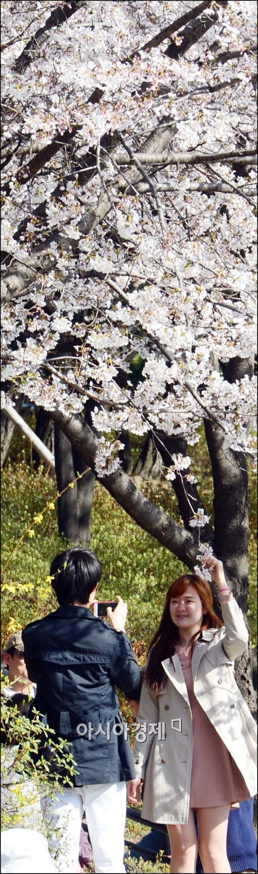 [아시아경제 최우창 기자]14일 휴일을 맞이하여 따뜻한 봄날을 즐기려는 시민들이 서울 송파구 석촌호수에서 만개한 벚꽃나무 아래 휴식 취하고 있다.