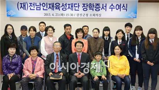 전남 강진군(군수 강진원)이 23일 강진군청 소회의실에서 ‘2013년도 상반기 전남인재육성재단 장학금 수여식’을 가졌다.