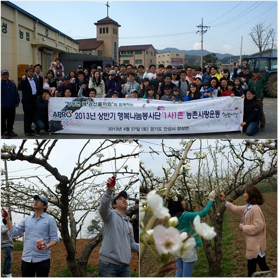 이날 임직원 자원봉사자 및 직원가족 80명은 양성농협직원들과 함께 배농장에서 배꽃수정 및 농장 잡초 제거 등을 하며 마을 곳곳에서 일손을 도왔다.
