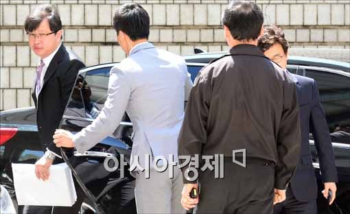 [아시아경제 최우창 기자]특정경제범죄가중처벌법상 횡령과 배임 혐의 등으로 기소된 SK그룹 최태원 회장과 동생인 최재원 수석부회장이 29일 오후 서울중앙지방법원에서 열린 항소심 공판에 참석하기 위해 차에서 내리고 있다.