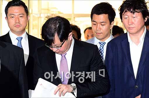 [아시아경제 최우창 기자]특정경제범죄가중처벌법상 횡령과 배임 혐의 등으로 기소된 SK그룹 최태원 회장의 동생 최재원 수석부회장이 29일 오후 서울중앙지방법.