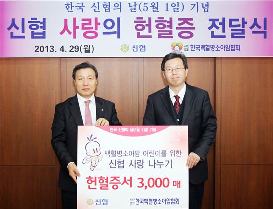 전국 949개 신협 이사장과 직원 1만 여 명은 ‘더불어 사는 따뜻한 금융공동체’라는 신협의 설립 이념과 사회적 책임을 실천하기 위해 지난 두 달간 자발적으로 이웃사랑 나눔운동을 펼쳐 총 1억원의 기부금을 조성했다. 이와 동시에 전국 신협에서 릴레이 헌혈캠페인도 전개해 총 3000매의 헌혈증도 마련했다.