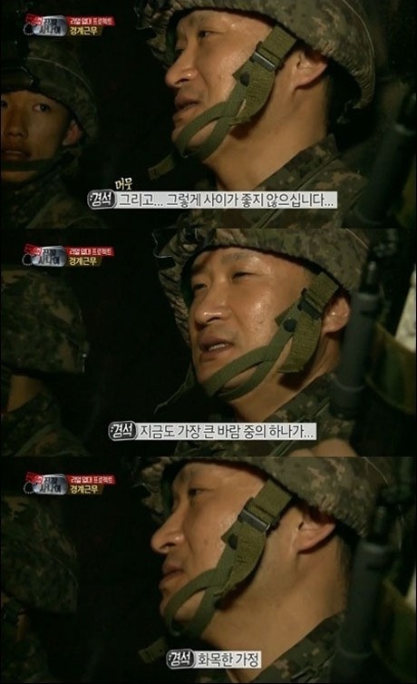 서경석은 "지금 나이가 마흔이 넘었는데도 철조망 철거할 때 엄마 생각이 났다"며 "부모님들이 잘 지내길 바라는 것보다 당신들이 알아서 하시게 하는 것이 효도인 것 같다고 생각했다"고 어린 사수에게 인생에 대한 조언을 들려줬다.