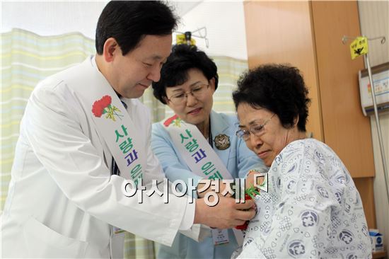 전남대병원은 8일 어버이날에 입원하고 있는 65세 이상 어르신 환자 500여명에게 직접 카네이션을 달아주며 위로와 쾌유 기원의 시간을 가졌다.