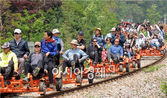 [포토]곡성 레일바이크 즐기는 관광객 북적