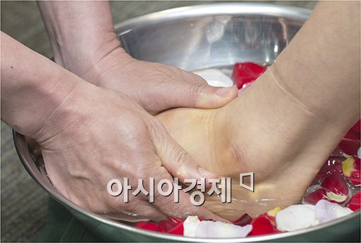 [아시아경제 윤동주 기자] 20일 서울 강남구 듀오 본사에서 열린 '부부사랑 세족식'에서 최고의 부부로 선정된 부부가 배우자의 발을 닦는 '세족식'이 열리고 있다. 이번 행사는 결혼정보회사 듀오가 '부부의 날'을 맞아 부부간의 섬김과 헌신을 다짐하고 '변함없는 부부사랑'의 의미를 널리 알리기 위해 마련했다.