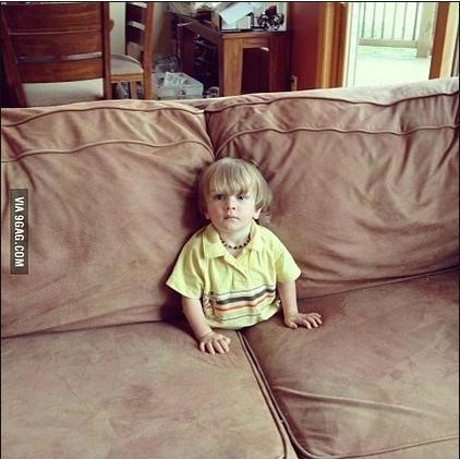 공개된 사진 속에는 한 아이가 소파 등받이 틈으로 하반신을 넣고 상반신만 남은 것처럼 보이게 만들었다. '간 떨어진 엄마'라는 제목처럼 아이 엄마가 보게 된다면 기겁할 만한 사진이다.