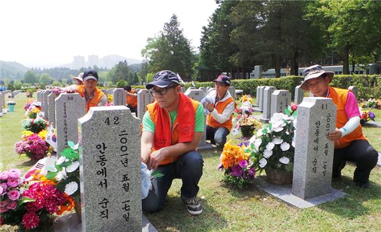 또한 신협중앙회 직원으로 구성된 두손모아봉사단도 국립대전현충원을 찾아 묘비 닦기 봉사활동을 펼치며 나라사랑을 실천했다.