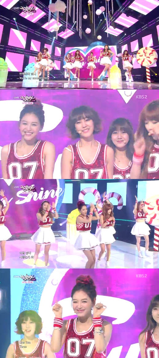 레인보우는 7일 오후 방송된 KBS2 '뮤직뱅크'에 출연해 첫 정규음반 타이틀곡 '선샤인(Sunshine)'을 열창했다.