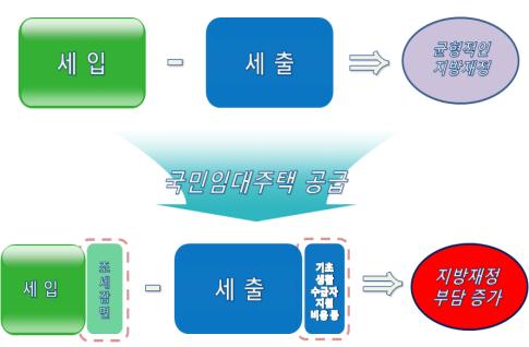 문제는 저소득층을 대상으로 한 국민임대주택의 특성상 이주가구로 인한 경기도 조세부담과 복지비용은 증가하나 세입 증가는 매우 미미하다는 점이다