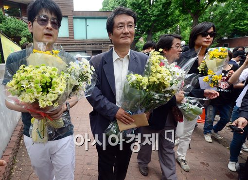 [아시아경제 백소아 기자] 20일 서울 종로구 청와대 앞에서 탁현민 성공회대 겸임교수, 안도현 시인, 문성근 영화배우, 주진우 기자가 국가정보원 선거개입에 대한 성명을 발표하고 있다. 탁 교수 등 5명은 성명서를 통해 박근혜 대통령은 진심으로 사과하고 책임자 처벌과 정보기관 개혁, 수사기관 독립 방안을 내놔야 한다고 촉구했다.