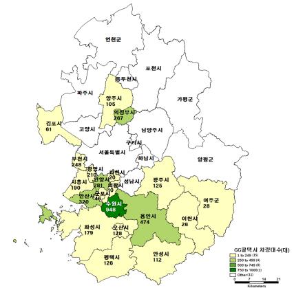 경기개발연구원 송제룡 연구위원은 2일 '경기도 GG콜택시 활성화 방안 연구'에서 "현재 경기도 20개 시군에서 GG콜택시 3904대가 운행되고 있다"며 "이는 도내 전체 택시 3만6186대의 11%를 차지한다"고 말했다.