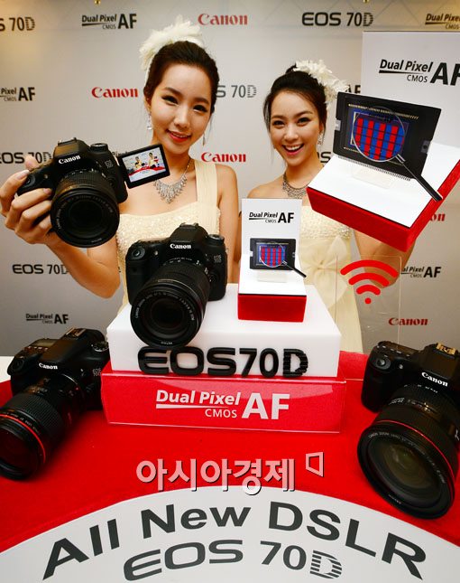 [아시아경제 백소아 기자] 캐논코리아컨슈머이미징이 2일 서울 태평로 프레스센터에서 신기술 'Dual Pixel CMOS AF'의 탑재한 중급형 DSLR 카메라 'EOS 70D'를 선보이고 있다.