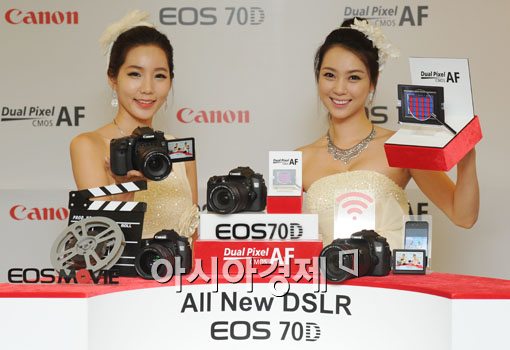 [아시아경제 백소아 기자] 캐논코리아컨슈머이미징이 2일 서울 태평로 프레스센터에서 신기술 'Dual Pixel CMOS AF'의 탑재한 중급형 DSLR 카메라 'EOS 70D'를 선보이고 있다.