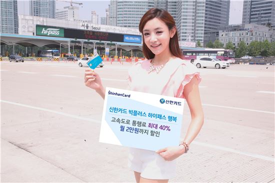 [아시아경제 김은별 기자] 신한카드는 한국도로공사와 제휴, 후불 하이패스 이용시 고속도로 통행요금을 최대 40%(월 2만원)까지 할인해주는 '신한카드 Big Plus 하이패스 행복(이하 하이패스 행복카드)'를 출시해 판매 중이라고 10일 밝혔다.