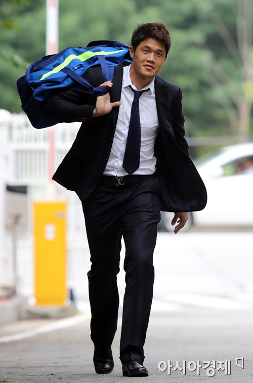 [파주=아시아경제 정재훈 기자] 정성룡이 17일 오전 파주NFC에서 축구국가대표팀 소집에 임하고 있다.