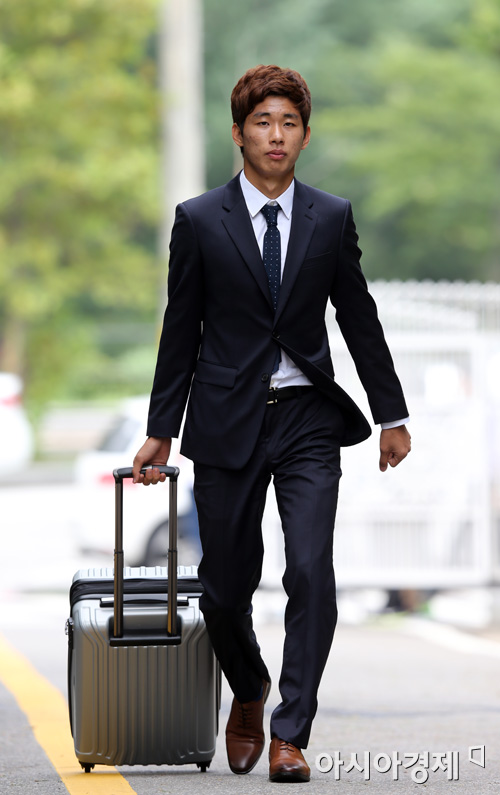 [파주=아시아경제 정재훈 기자] 윤일록이 17일 오전 파주NFC에서 축구국가대표팀 소집에 임하고 있다.