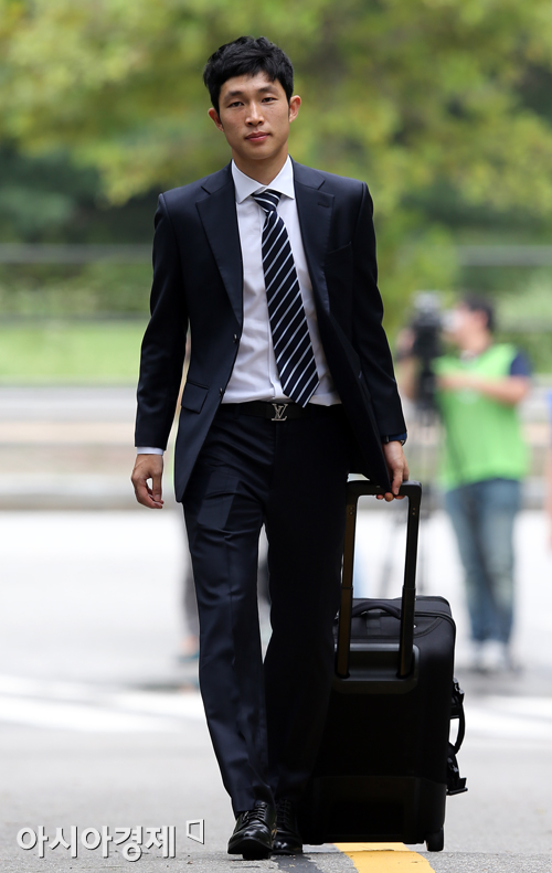 [파주=아시아경제 정재훈 기자] 이승기가 17일 오전 파주NFC에서 축구국가대표팀 소집에 임하고 있다.