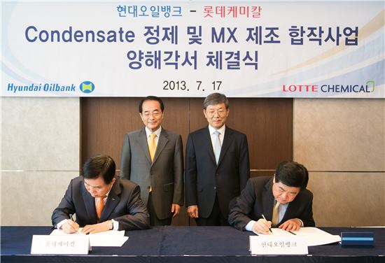 17일 두 회사는 혼합자일렌 및 경질납사 제조 합작법인을 설립하고 새로 공장을 건설하는 내용의 양해각서(MOU)를 맺었다. 롯데그룹과 현대중공업간 합작사업이 추진되는 건 이번이 처음이다. 회사 관계자는 "석유정제와 석유화학이라는 상호보완업종에서 각 회사가 갖는 강점을 서로 키우는 전략적 제휴"라고 설명했다.