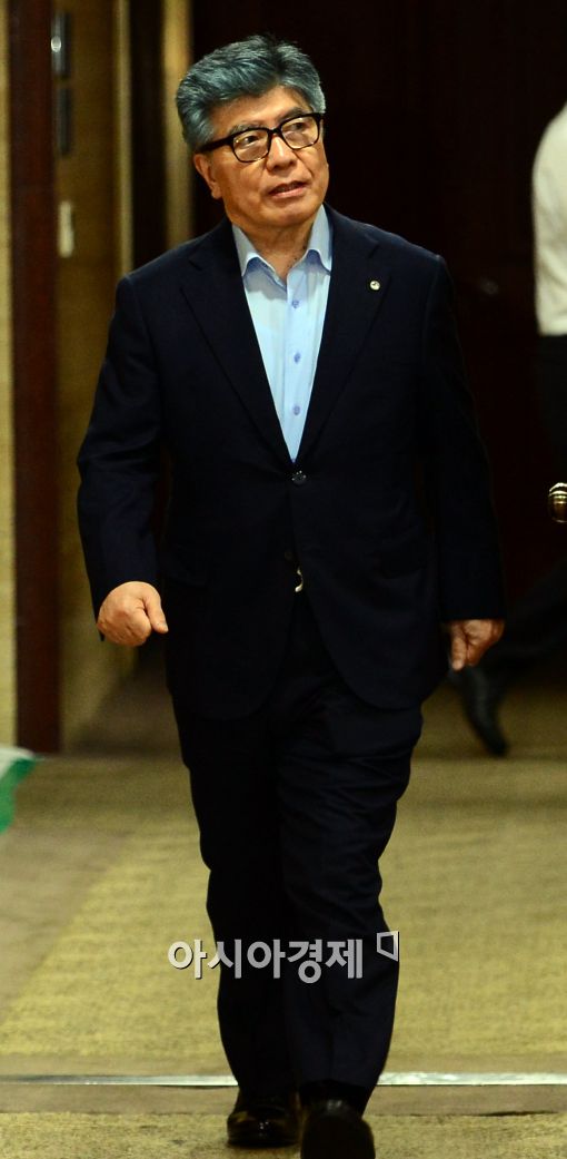 [아시아경제 최우창 기자]김중수 한국은행 총재가 24일 서울 한국은행에서 열린 경제동향간담회에 참석하기 위해 입장하고 있다.