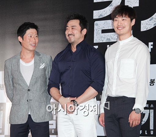 [아시아경제 정준영 기자] 배우 유해진, 마동석, 이희준이 7일 오후 서울 성동구 행당동 CGV 왕십리에서 열린 영화 '감기(감독 김성수)' 언론시사회에 참석해 포토타임을 갖고 있다.