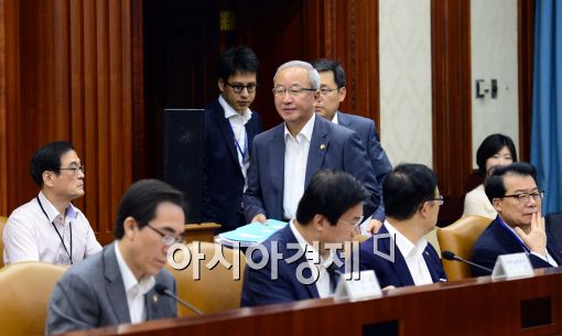 [아시아경제 최우창 기자]현오석 부총리 겸 기획재정부 장관이 8일 서울 종로구 세종로 정부서울청사에서 대외경제장관회의에 참석하기 위해 입장하고 있다.