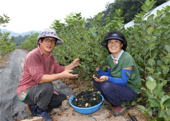 [아시아경제 왕성상 기자] 충북 괴산에서 달콤한 맛과 냄새로 인기가 높은 웰빙건강식품 블루베리와 아로니아(블랙초코베리)로 부농의 꿈을 키우는 부부가 있어 화제다.