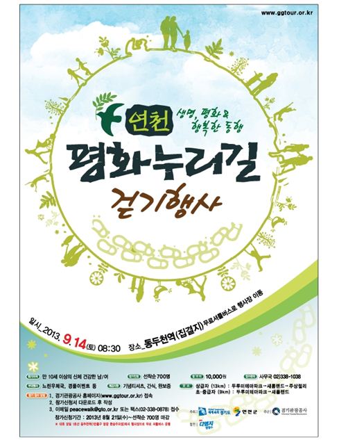 [수원=이영규 기자]경기관광공사가 다음달 14일 열리는 '2013 연천 평화누리길 걷기 행사' 참가자를 모집한다.