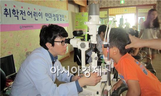 지난 27일 한국실명예방재단과 조선대학교병원 안과의 지원으로 100명의 어린이의 시력측정, 굴절검사, 약시검사(랑테스트), 사시검사, 정밀 안전 검사는 물론 시신경 검사 등 정밀검진을 무료로 실시했다.
